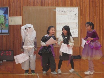 全校集会で太谷選手から寄贈されたグローブが紹介されました。